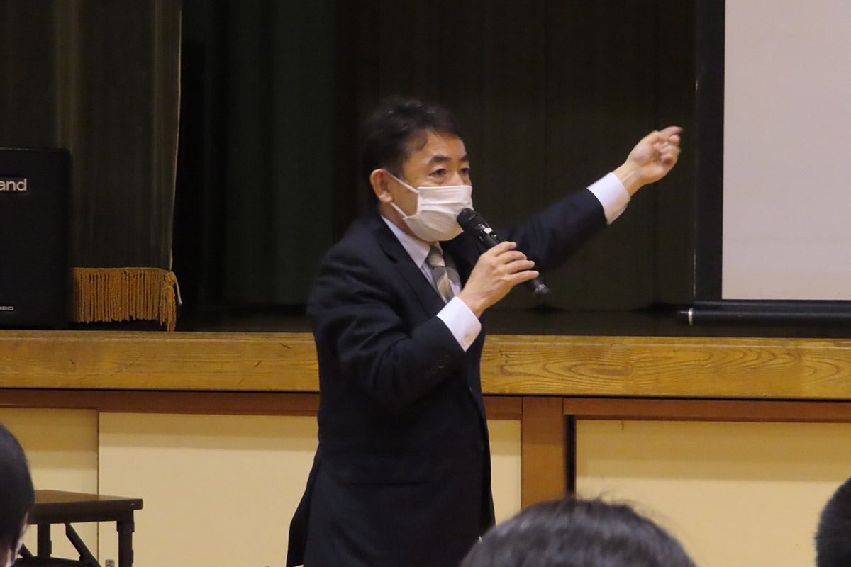 イノベーションとは何かについて考え、将来の不安や持続可能な社会に向けてイノベーションを起こす変化の重要性について、常識や思い込みを捨てて一人一人が自由に考えた。無限の可能性を見据えて「捨てる」「つなぐ」「忘るな」を基本とし、勇気をもって試みる大切さについて学んだ。