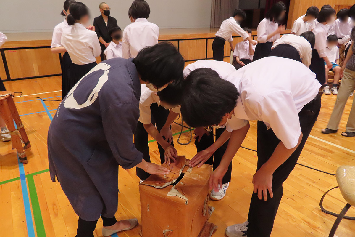 - 様々な椅子を見て、たくさんの種類があるんだなと思いました。そして、椅子に触れてみると、皮だと思っていたものが木だったり、硬いと思っていたものが意外と柔らかかったり、とても面白かったです。物を見た目だけで判断せず触れてみたいと思いました。