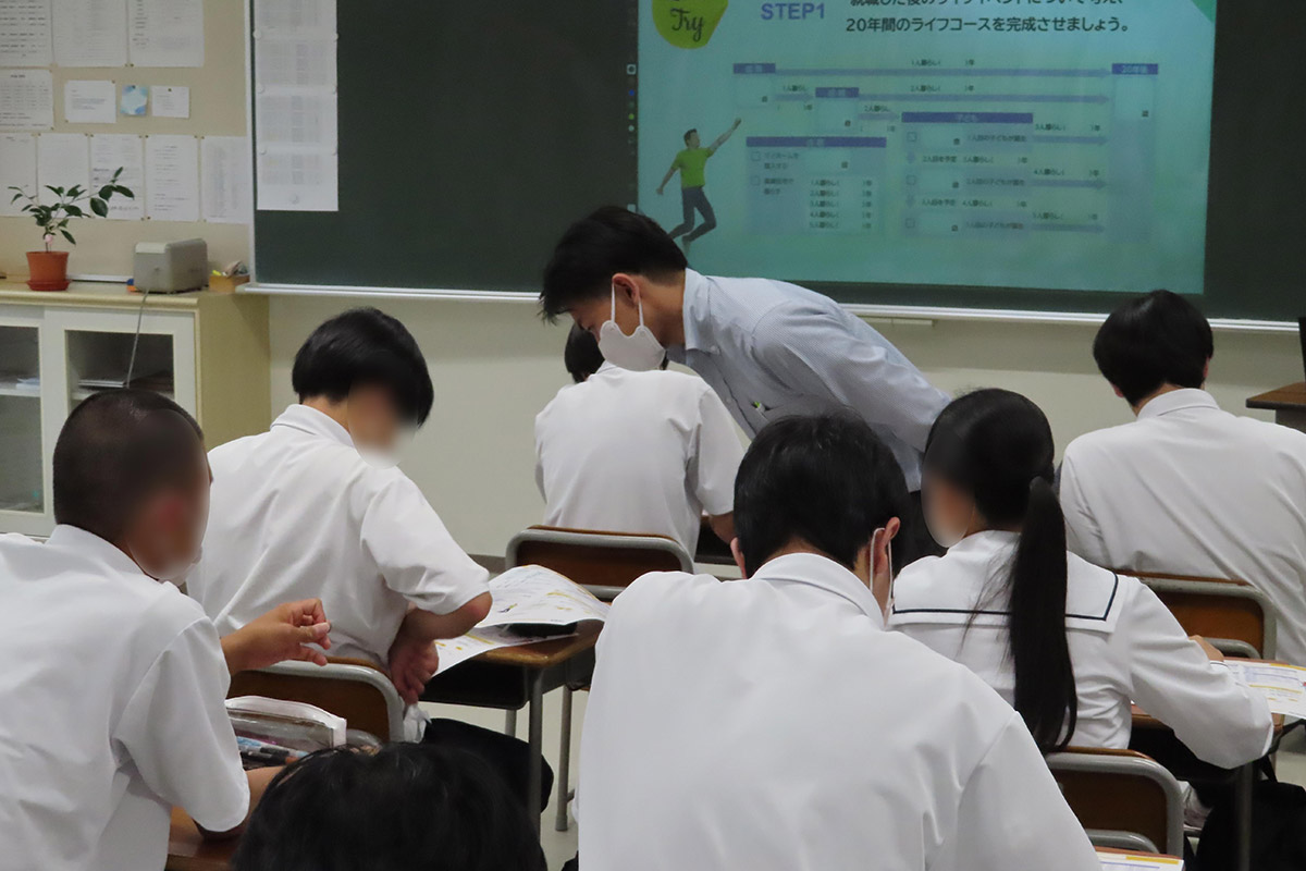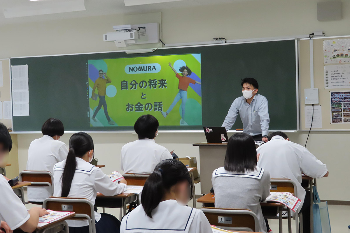 自分の将来の夢を実現するためには金融リテラシーを高める必要があることを理解し、人生の選択肢を拡げるために自分の将来とお金についてワークシートを用いて考えた。まずは家計のイメージを掴むために、家計管理において重要なことについて学び、自分の目標のためにはお金がいくら必要で、毎月の収入のうちいくら貯蓄をすれば目標に達するのかを考えた。つぎに、就職や結婚・出産など、自分が思い描くライフコースに必要なお金を計算した。お金を計画的に貯めたり殖やしたりするための金融商品の種類やメリット・デメリットと、商品の一つである株式投資について詳しく学習した。