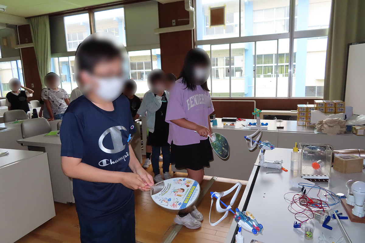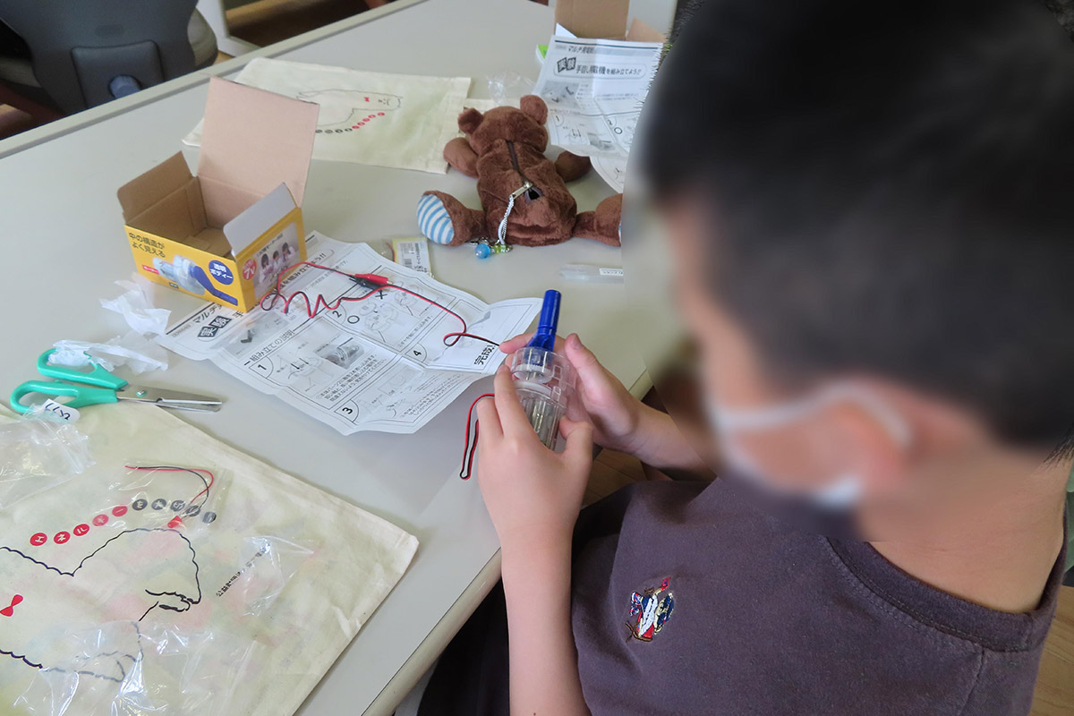- 組み立てキットを作って遊んだことが楽しかったです。モーターを回すと光がついたり、ハッピーバースデーの曲が流れたりしていました。