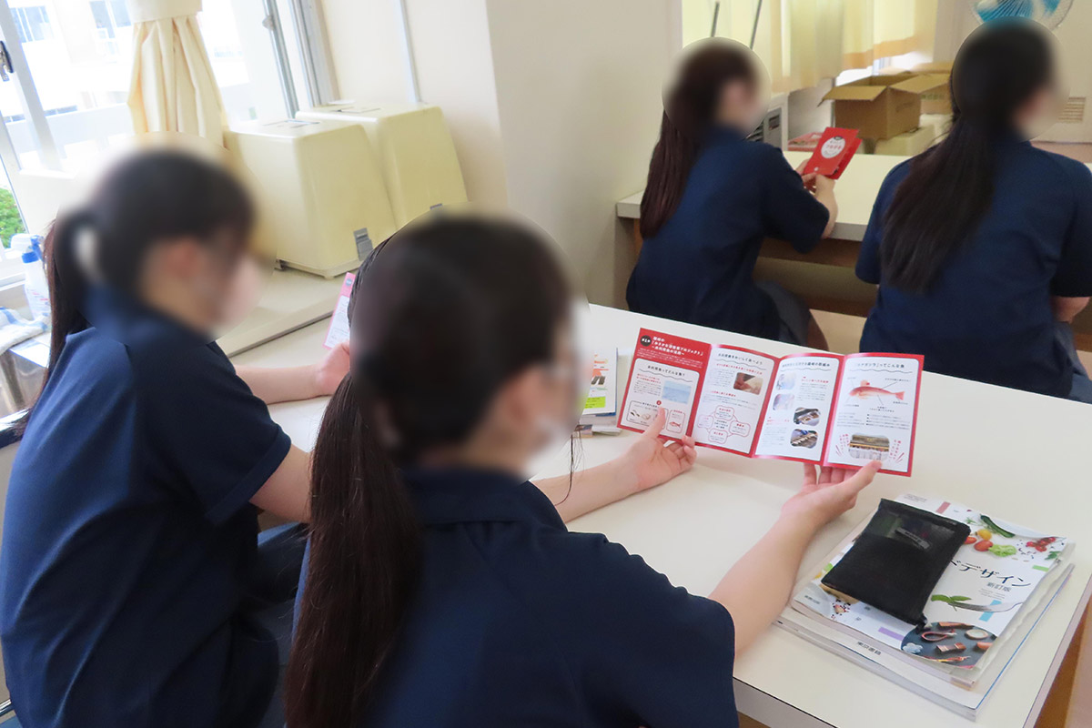 蒲鉾の支出金額が全国1位の仙台市の「笹かまぼこ」は、獲れすぎた魚の利用と保存の為にすり身を手のひらで叩いて成形したものが始まりで、地域の人々の「もったいない」という思いから生まれたことや、食品市場では「健康志向」「簡便志向」が高まっている中で、良質な魚肉たんぱくを手軽に摂取できる蒲鉾はヘルシーフードであることなどを学習した。未利用魚も工夫次第では美味しく食べることができることから、未利用魚を活用した商品開発を行い、海の豊かさや魚食文化を未来につなげるための取り組みについても話を伺った。