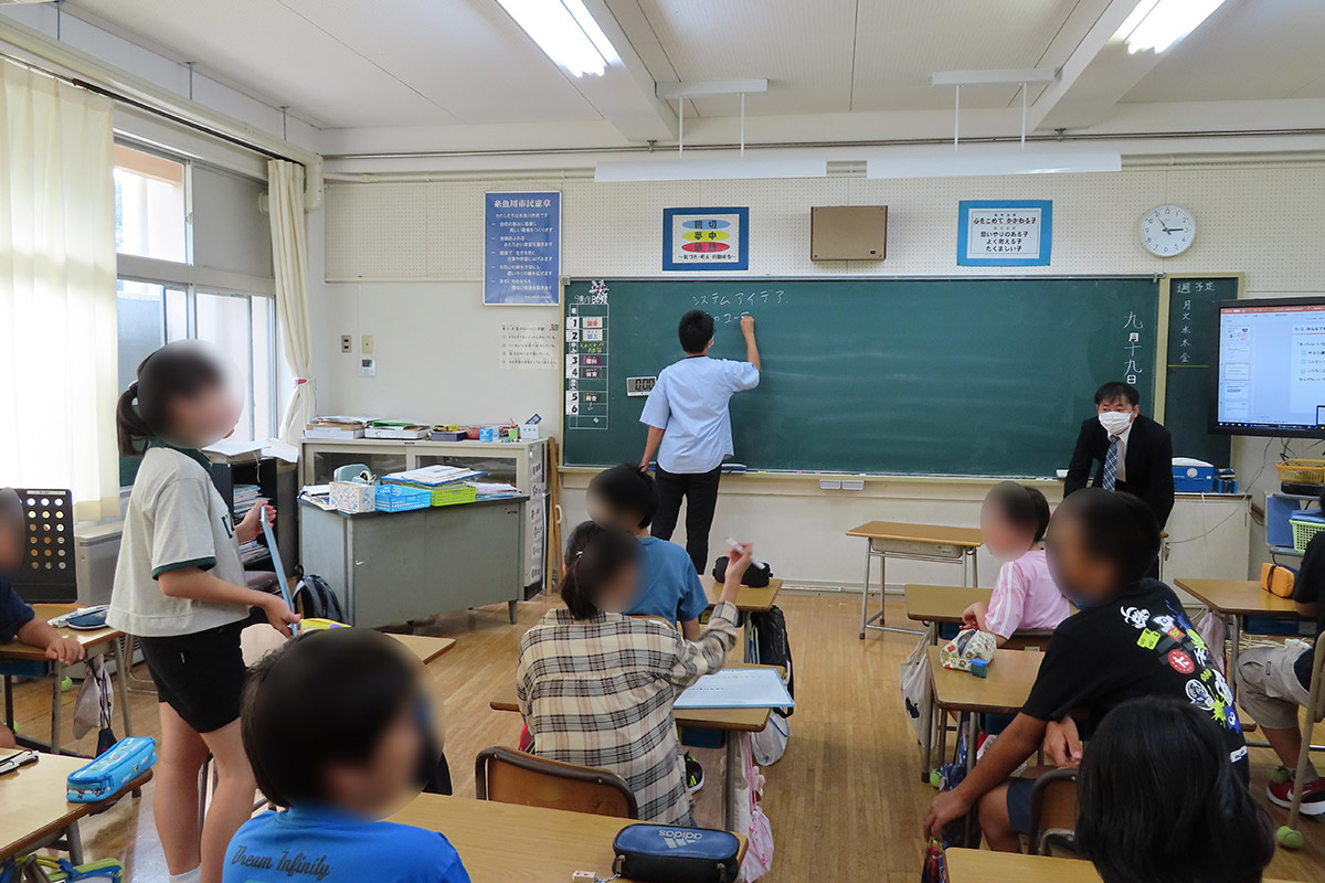 「IT」は信号や電車を動かしたり、学校での成績や出席の管理をしたり、普段の生活を支えている身近なものである。そのシステムを作っているシステムエンジニアの仕事内容を通して、ITという技術を使い、日本や世界中の仲間と協力してお客様の困りごとの解決や世の中をよりよくすることができる仕事であることを学習した。AI(人工知能)の仕組みを理解するために、生成系AI「ChatGPT」の体験も行った。講師が考えた「糸魚川に関するシステム」の良いところを発表したあと、「あったらいいな、こんなシステム」をテーマに、困りごとを解決できるシステムや、あると便利なシステムついて、グループ毎に考え発表した。