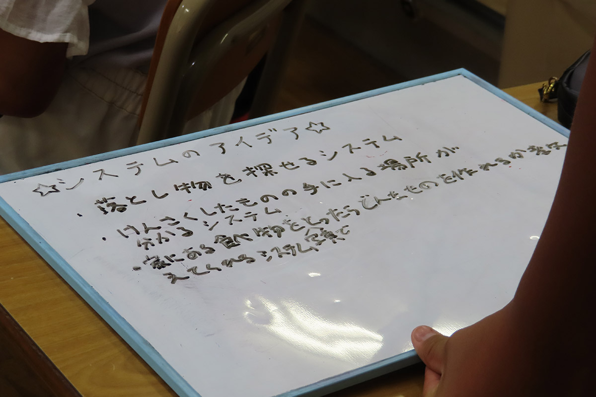 - システムを考えたときはグループでたくさんの意見が出てよかった。こんなのが本当にあったらいいなとも思いました。この授業でたくさんのことが学べて本当によかったです。