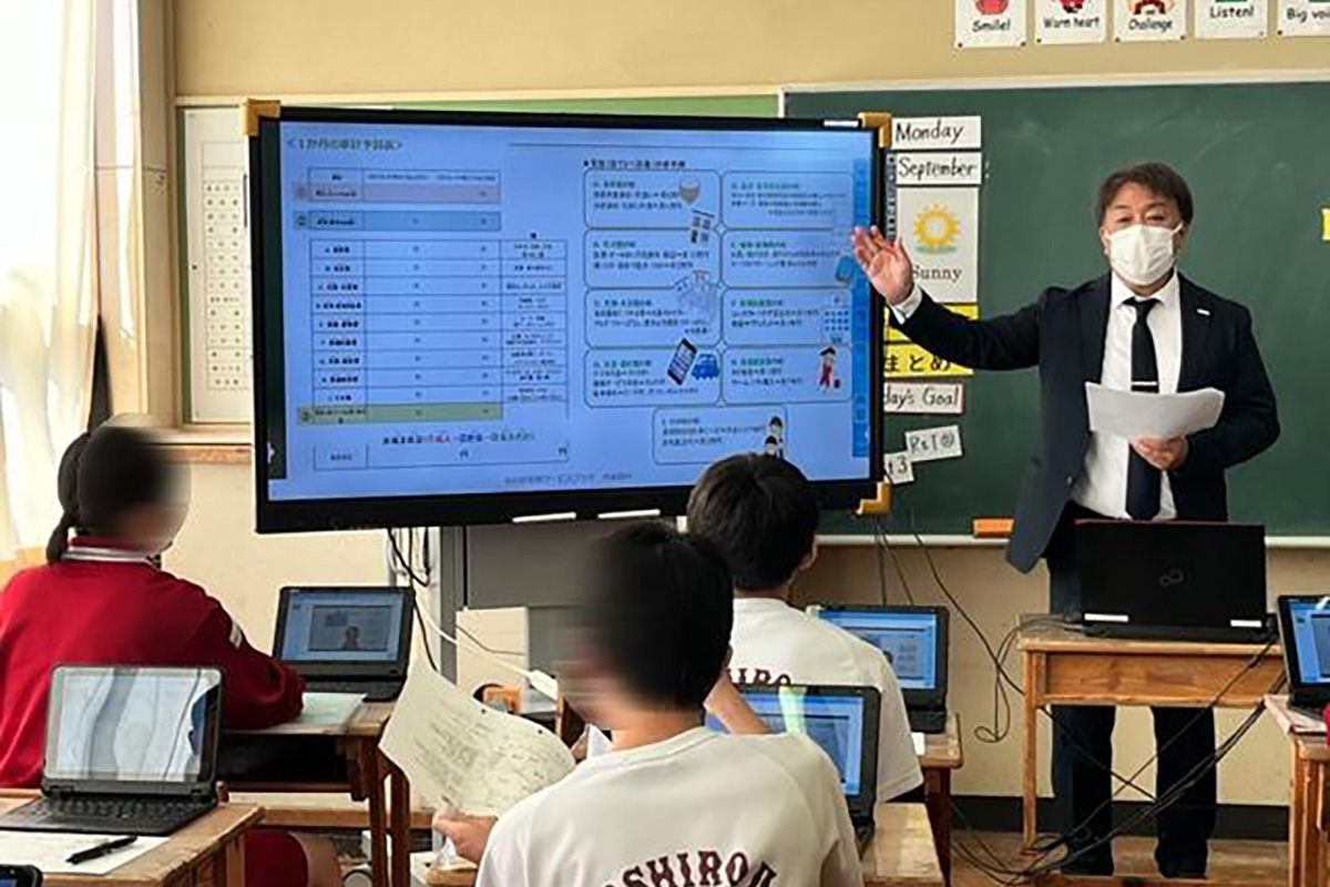 ワークシートを用いて、予め設定していた人物像の1日の生活行動と時間割(睡眠・食事・仕事・自由・通勤の5つの時間に分割)を考えた。次に、1ヶ月の先取り貯金額を設定し、支出項目がどのくらいかを考え支出合計額を計算した。設定していた人物像の平均月収をもとに家計予算の見直しを行い、本当に必要なものや不要なものを見極め、収入に見合った生活の中でも自分が満足する生活を送るために、やりくりをする大切さを学んだ。また、キャッシュレス決済について、支払い方法や手段についても理解した。