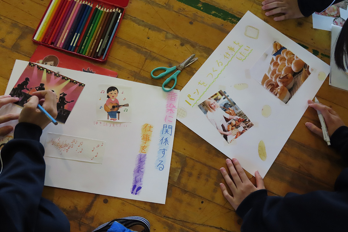 - 将来の自分が何をしたいか、自分の心の中にある事などを、コラージュ作りを通して気付くことができました。友達と自分のしたいことを共有したり、友達のしたいことを一緒に楽しく考えたり、将来に自信や楽しみを抱くことができた良い機会であり、有意義な時間だったと思います。