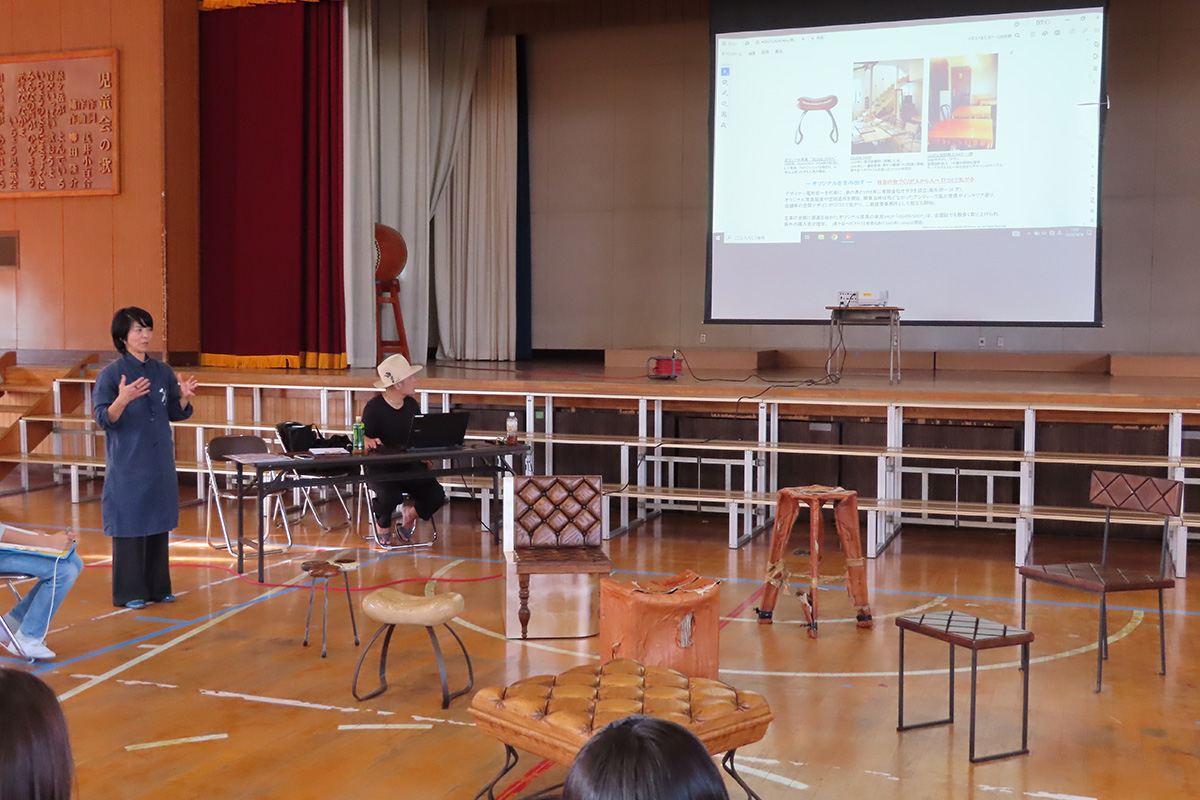 仙台から世界へ発信するだけではなく、世界から仙台に興味・関心を持ってもらうために当社で作った様々な作品や取り組みについて紹介。講師がデザインしたオリジナルの家具を自由に触れることにより、家具や物事の固定概念を取り払った。物作りに行き着いた講師自身の半生を振り返りながら、挫折からの目標・達成、「好きなことはとことんやる」やり切って無理だと思った時はあきらめて(明らかに極めて)も良いこと、自分の一歩の大切さ、自分探しは全てが蓄積されることなどを学び、「好き」を仕事にするために起業(会社を設立)を決めたきっかけについて話をうかがった。