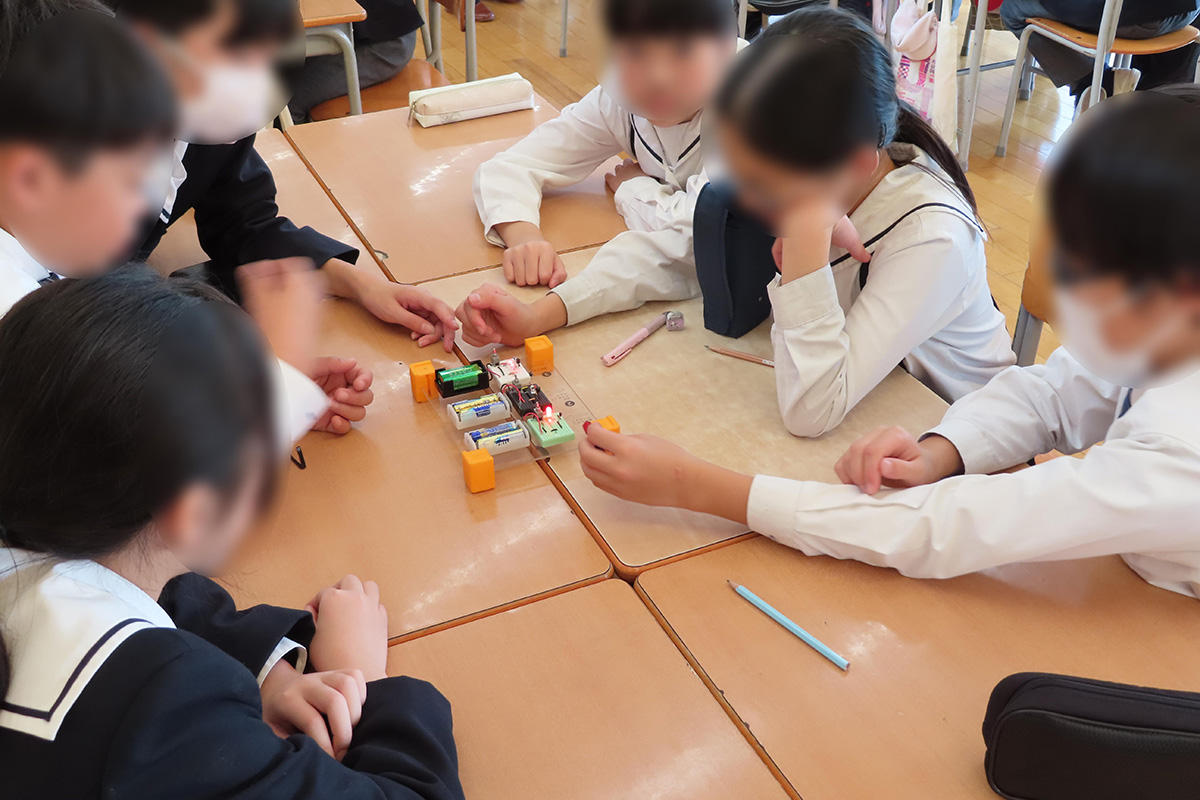 電気と私たちのくらしについて、身のまわりには電気を使うものが多くあること、また、電化製品の進化について洗濯機を例に学習した。磁石や温度に反応して、電気を点けたり光の大きさを変えたりする実験を通して、電気を操る様々な部品に触れた。また、実際の真空管や半導体、トランジスタに触れながら電気の歴史を学ぶとともに、トランジスタを使用した信号機の作成を行いながら半導体について深く理解した。半導体の進化により私たちの生活が便利になった一方で、世界の電力消費量が増えていることから、様々ある環境問題を解決する方法や、環境問題の解決を実現する新しい製品や技術についてグループ毎に考えて発表した。