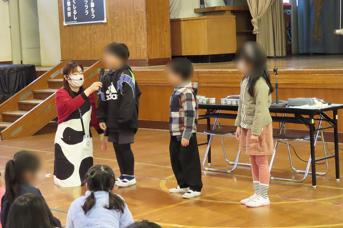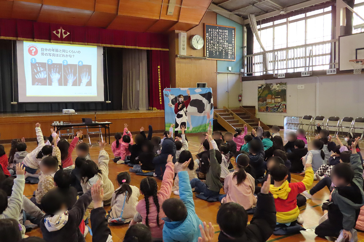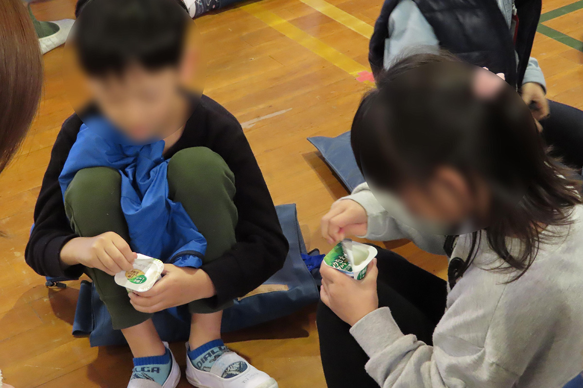 骨には「体を支える」「内臓を守る」「カルシウムの貯金箱」の役割があることや、骨はカルシウムとタンパク質からできていること、小学生ではどのように骨が発達するのかについてクイズを通して発育の大切について学習した。骨貯金は大人になったら増えないことから、骨を丈夫にするために「骨のもととなる食べ物を食べる」「外で運動する」「しっかり睡眠をとる」必要性についても学んだ。体験学習では「のむヨーグルトづくり」を実施。固形のヨーグルトを振って、滑らかになったヨーグルトの様子を観察した。