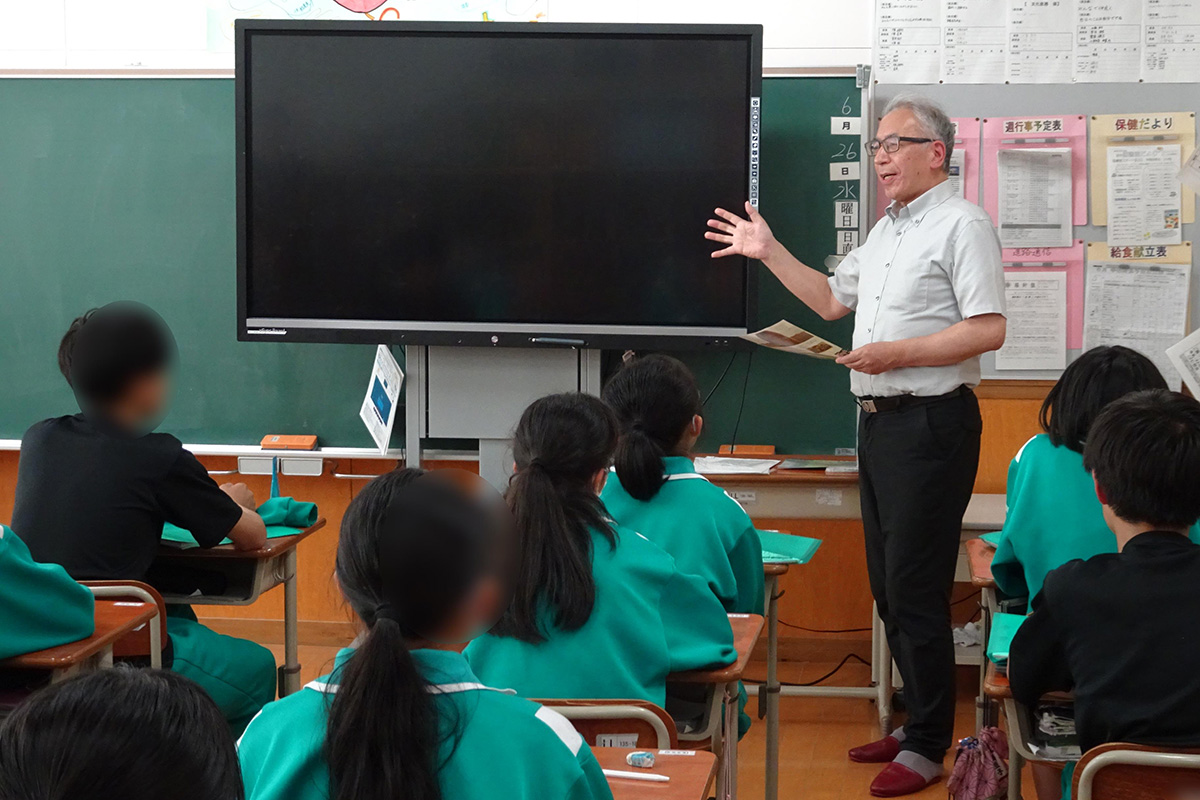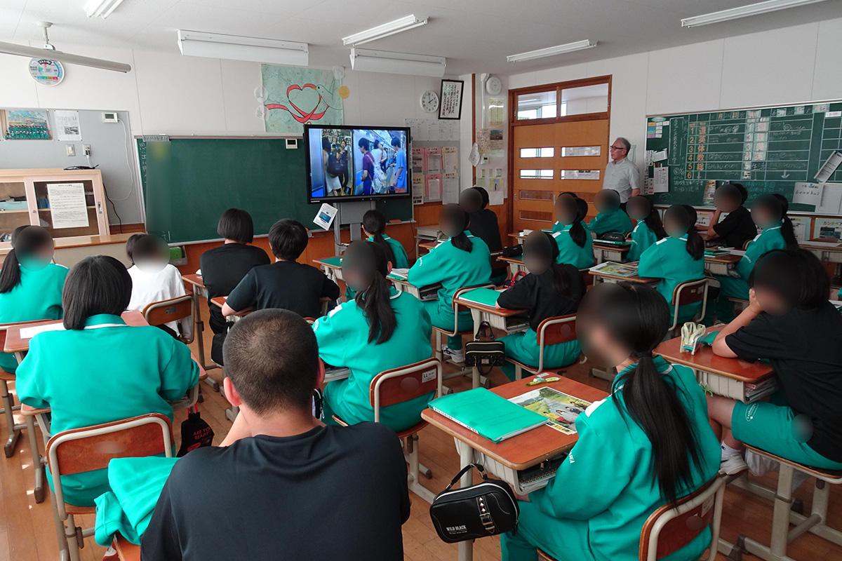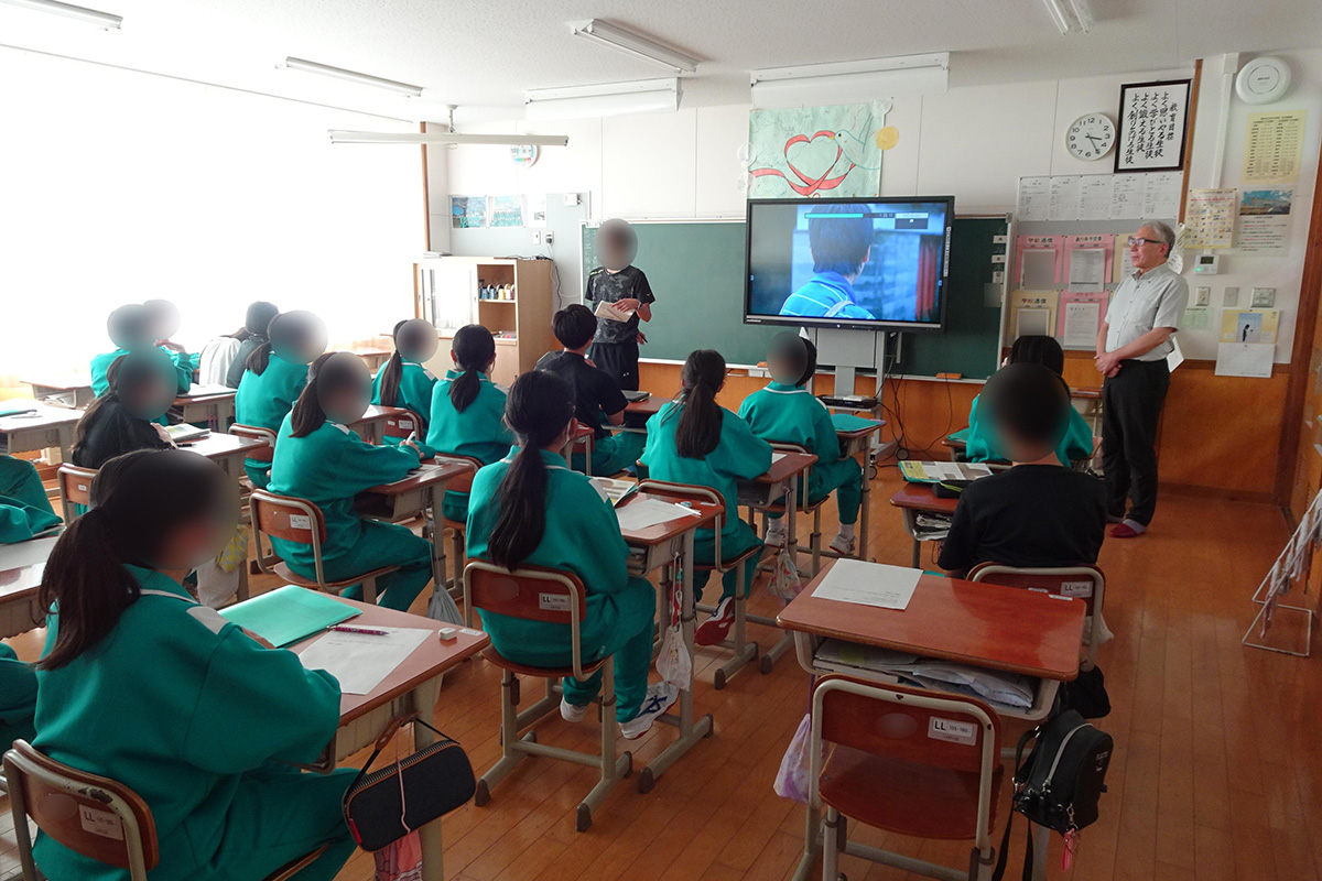 福島県内における東日本大震災の被災状況、福島第一原子力発電所事故に伴う避難指示や自主避難の状況など、映画「ハルをさがして」の背景についての解説を講師から受けた上で鑑賞した。映画は、東日本大震災から1年後の福島県が舞台。福島第一原子力発電所事故後に東京へ自主避難してきた中学3年生のチエコが、同級生3人とともに、福島県に残してきた愛犬「ハル」の行方を追う同世代のひと夏の冒険物語を通して、家族、友達、原子力事故の影響などについて学んだ。