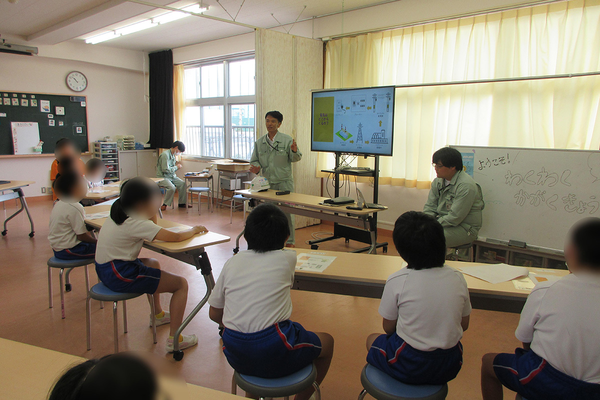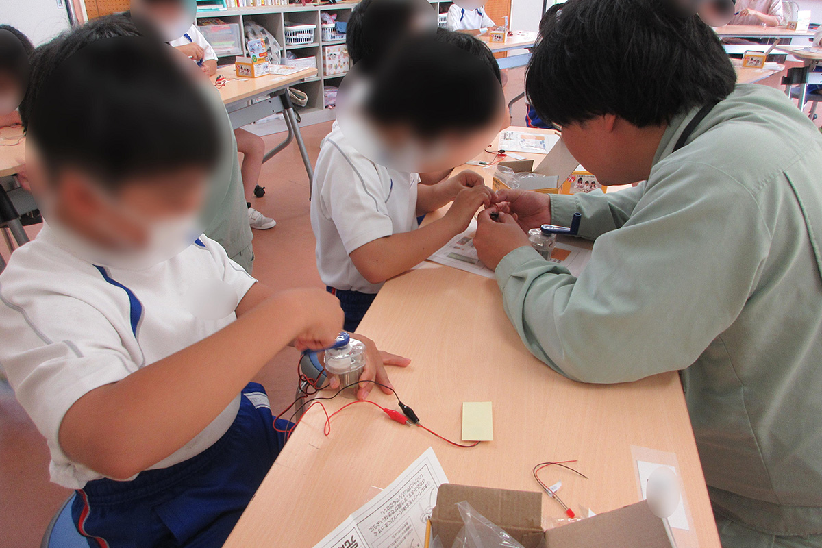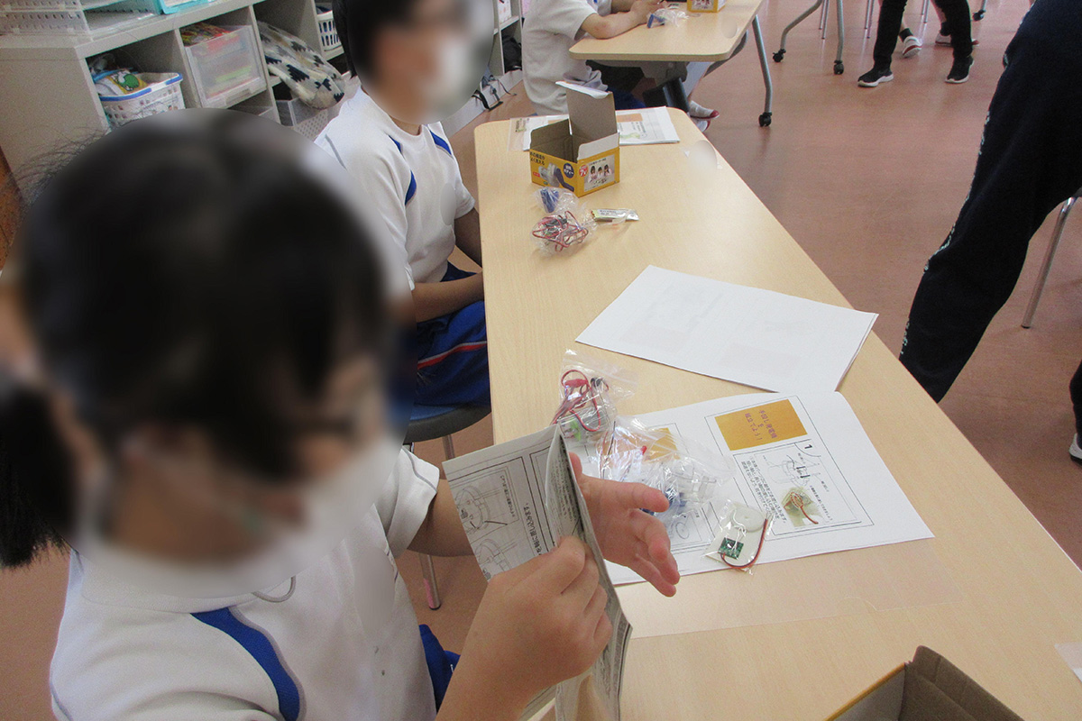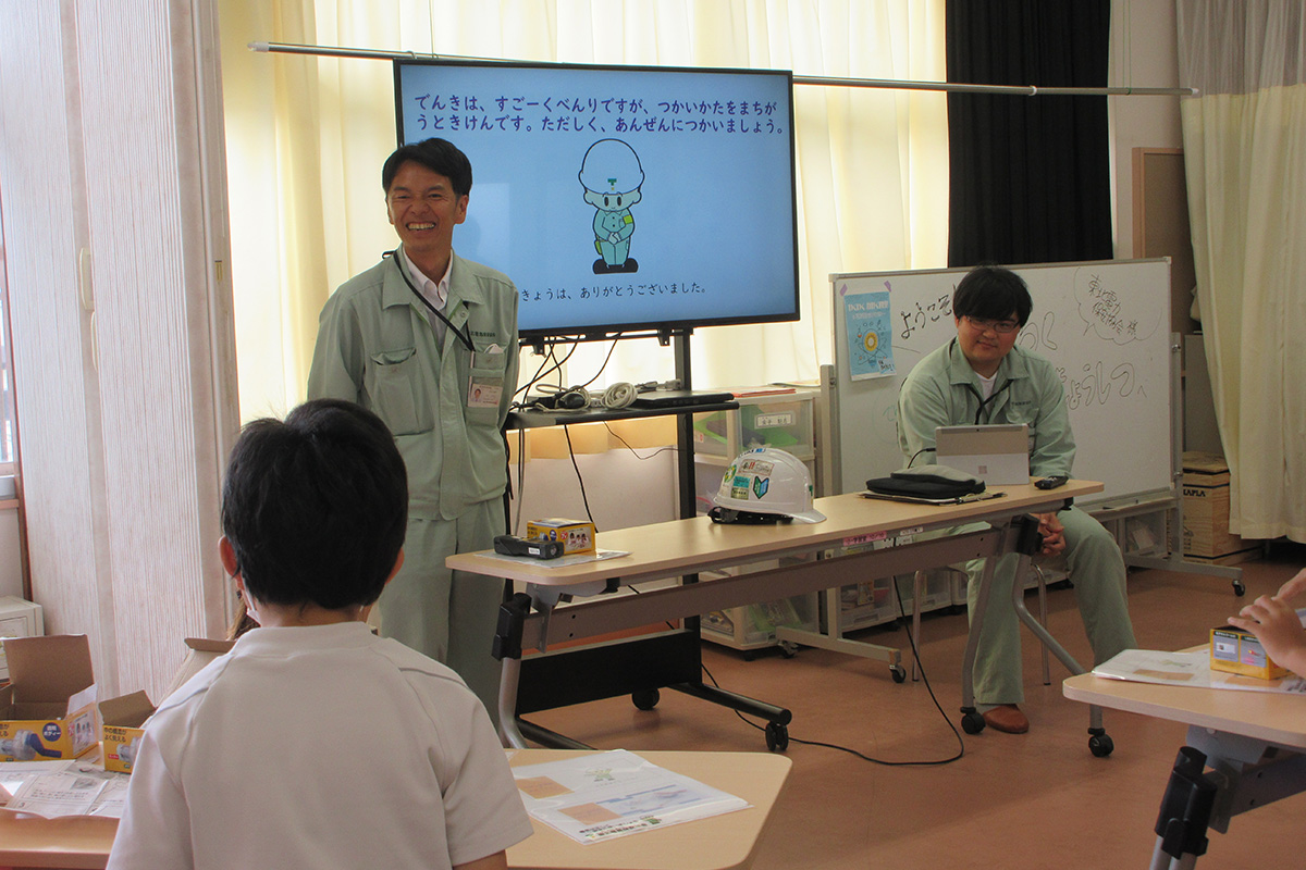 家の中で電気を使うものには何があるか、それらを使用する際の電気の正しい使い方について理解した。また、私たちの生活に電気がなくなるとどのように不便になるか、電気は発電所から送電線や変電所を通して運ばれていること、発電所の種類や仕組み、発電に必要なものなどについても学習した。電気が作られる仕組みを学んだ後には手回し発電機を組み立て、LEDの点灯やオルゴールを鳴らす体験授業を行った。