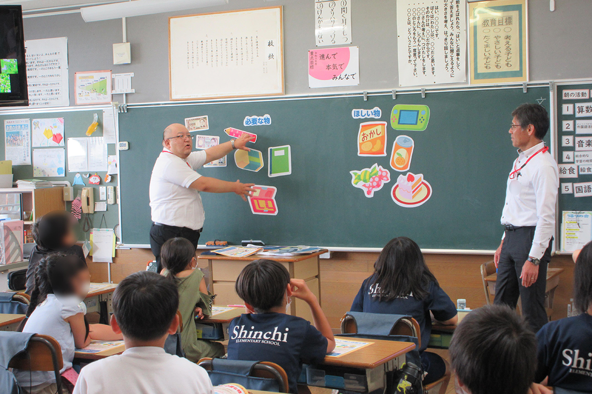 「硬貨の表はどっち?」というクイズからはじまり、お金の3つの働き(物やサービスと交換できる。貯めておける。物やサービスの価値を表す)について学習し、最近では、電子マネーやインターネットでもお金をやりとりされるようになっていることを学んだ。また、おこづかいの管理について考え、どういうものにいつ使うか。それがいくらかかるか。生活や勉強などに欠かせない「必要な物」は「欲しい物」より優先して買わなければならないこと、「欲しい物」も計画的に貯金すれば、買うことができることを理解した。