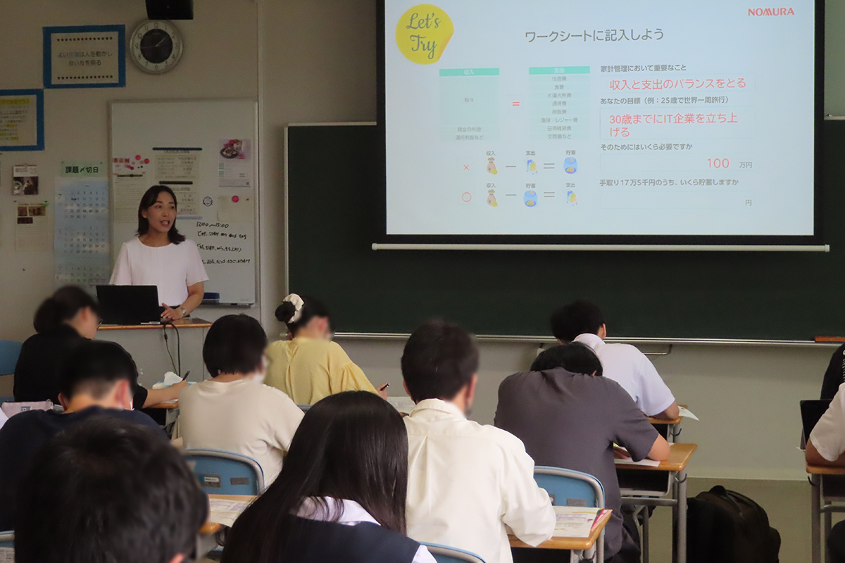 家計管理において重要なポイントは収入と支出のバランスを取ることであり、収入から支出を差し引いて貯蓄するのではなく、収入からある程度の貯蓄を行ったうえで支出する習慣を身につけることの大切さを学んだ。個人ワークでは、将来どのような人生を送りたいかを考え、思い描く生活を送るために必要な費用を試算するとともに、そのお金をどのように準備するか理解を深めた。また、資産形成(お金を貯める・殖やす)には、「預金」「株式」「債権」「投資信託」の4つの種類がありそれぞれにリスクとリターンがあるが、ローリスク・ハイリターンといった商品は世の中に存在しないことを学んだ。