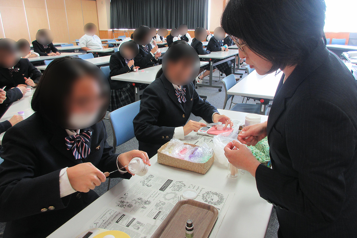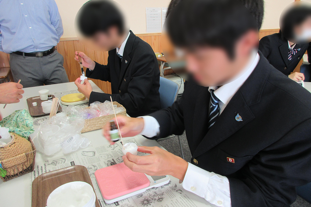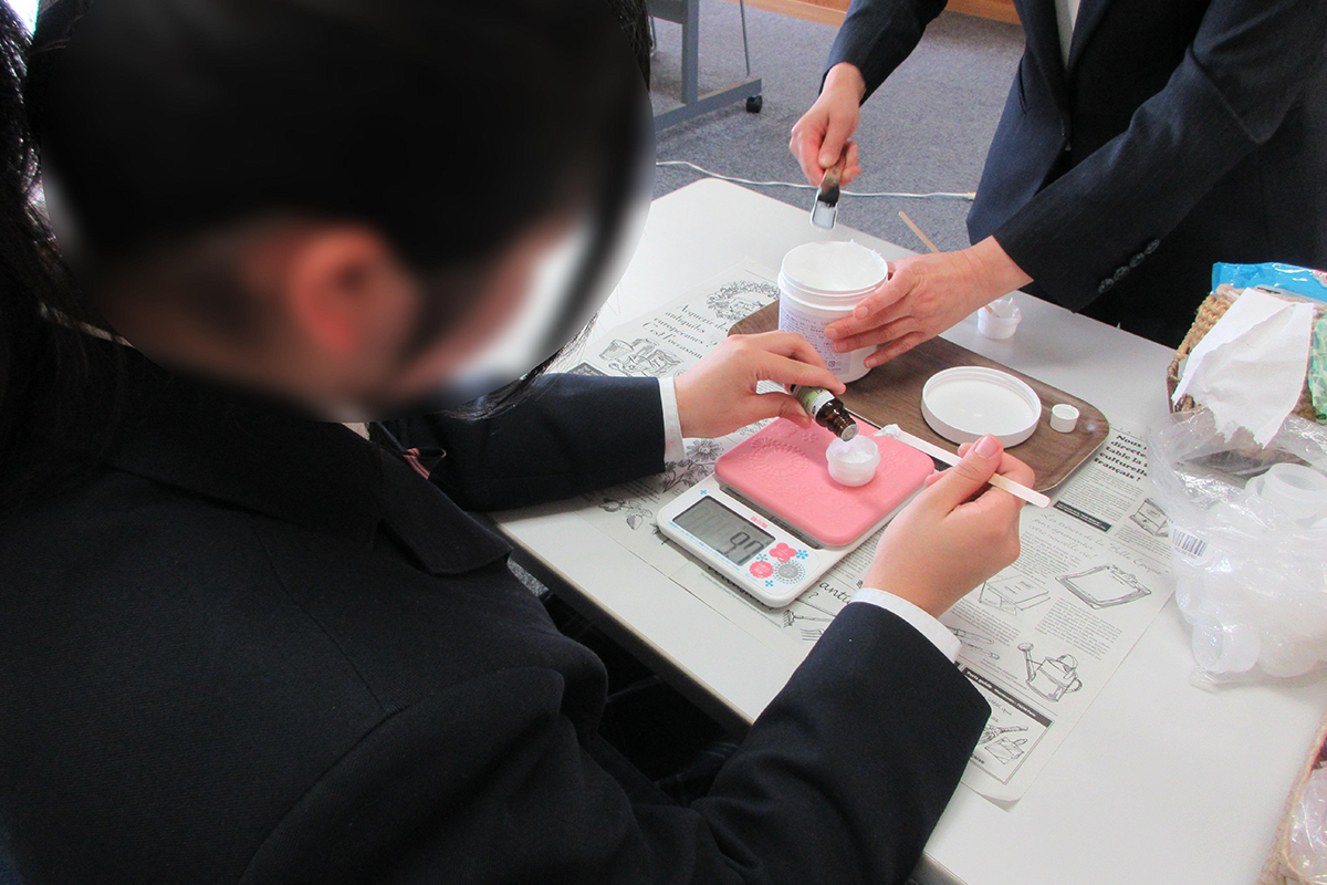 - 今回は保湿効果のあるアロマを使って保湿クリームを作りましたが、ダイエットや傷、火傷用のものも作ってみたいなと思いました。この経験から自分で化粧品を一から作ってみたいと思ったし、アロマのことをたくさん調べて、家族や身近な人にも知ってもらいたいと思いました。