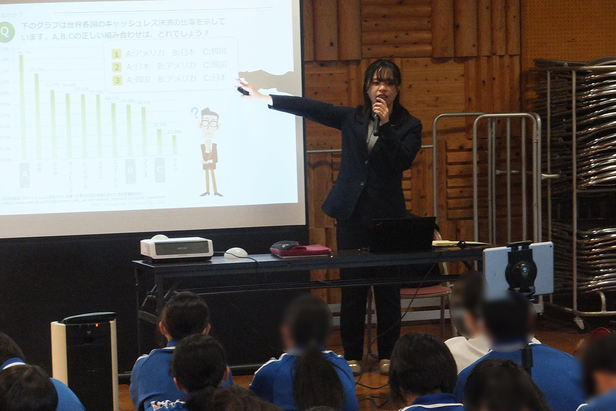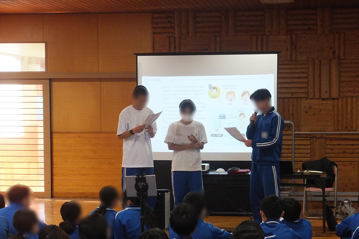 キャッシュレス決済の基本概念や日本における利用率についてクイズ形式で理解した。また、キャッシュレス決済の種類について、支払い方法(プリペイド、リアルタイムペイ、ポストペイ)と手段(接触型、非接触型、コード読み取り型)で分類されることを学び、それぞれのメリット・デメリットについて理解を深めた。さらに、若年層を狙った金融トラブル(名義貸しやアルバイト詐欺)について、クイズや寸劇を通じて学んだ。講義の後半では、人生の三大資金(住宅・教育・老後)などからライフプランの意義を考えるとともに、日本の金利と物価上昇を踏まえた資産運用の必要性について学んだ。最後に、株式投資を体験するゲームを通じて投資の基本を実践的に学んだ。