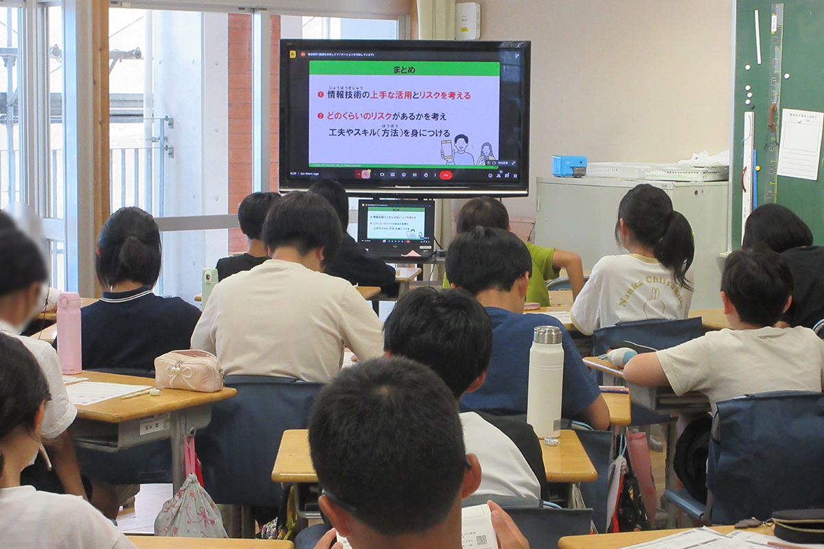 スマホやネットを上手に活用するためにはリスクを知ることが大切であり、「リスク(危険性)=起こりやすさ×被害の大きさ」であることを理解した。その後、自分に起こりそうなリスク(長時間利用、高額課金、チャットでの喧嘩、歩きスマホ)は何か、被害の大きさはどの程度かを考えた。また、スマホやネットの使い過ぎにはどのようなリスクがあり、ネットやSNSをやめたいときはどのような工夫をすると良いかを学んだ。最後にチャットは自分の感情が相手に伝わりにくく誤解が生じたり、些細なことで相手を傷つけてしまうリスクがあること、個人情報は慎重に扱わなければいけないこと、チャットでの返信に困ったときの工夫の仕方などを学んだ。