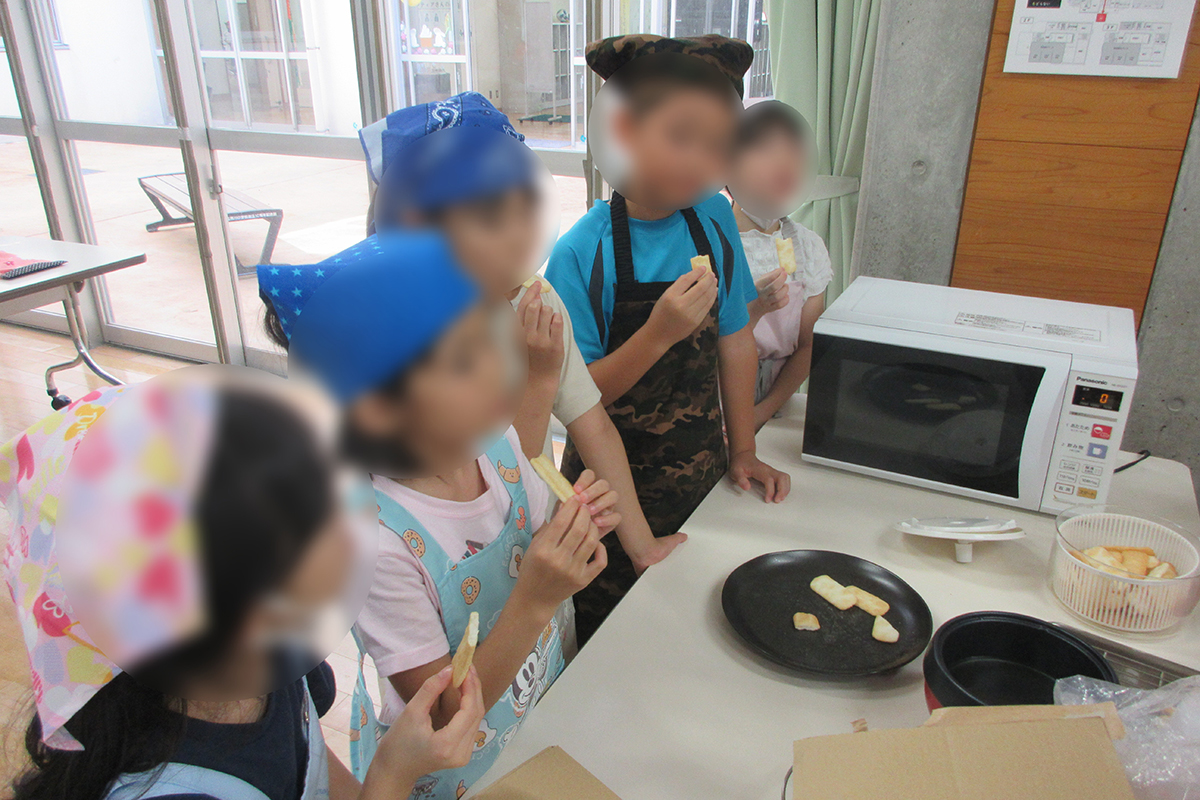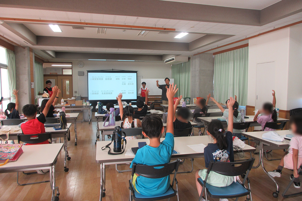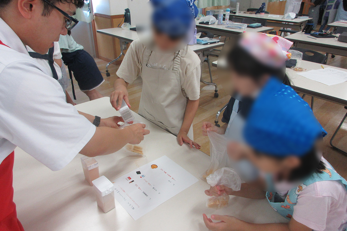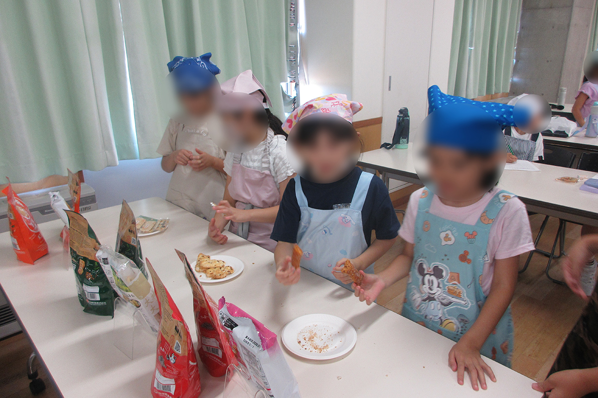 おせんべいの種類や原料、歴史などについて、チーム対抗○×クイズを行ったほか、人気商品「岩塚の黒豆せんべい」が出来上がるまでの工程や、工場での衛生管理について講話や動画を通して学習した。試食体験では、工場から直送された味付け前の「味しらべ」を試食し、おせんべい本来の風味を味わったあと、定番の砂糖醤油味のほか、のり塩味、ピザ味の中から好みのフレーバーを選びオリジナルの味付けを楽しんだ。また「田舎のおかき」「きなこ餅」「大袖振豆もち」の計3種類の商品の食べ比べを楽しんだ。