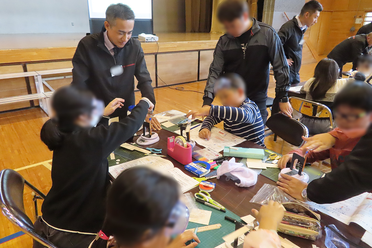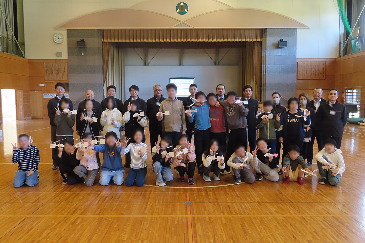川崎重工業では、私たちの生活に身近な新幹線(はやぶさ、こまち等)、鉄道車両、バイク、調理・配膳等を行うロボットのほか、航空機(ブルーインパルス等)やヘリコプターといった様々な乗り物やロボットを作っていることを紹介した。工作・実験の「マイヘリコプターをつくろう!」では、実際のヘリコプターの大きさや飛ぶ仕組みなどを紹介したのち、工作キットを使いオリジナルのヘリコプターを制作し飛行させた。ヘリコプターを高く真っすぐ飛ばすためには「ローター(羽)の角度を変える」「ローターを翼型にする」「テイルローターを取り付けて安定させる」ことが重要であることを知り、工作・実験を通じてヘリコプターに使われている高度な技術について理解を深めた。