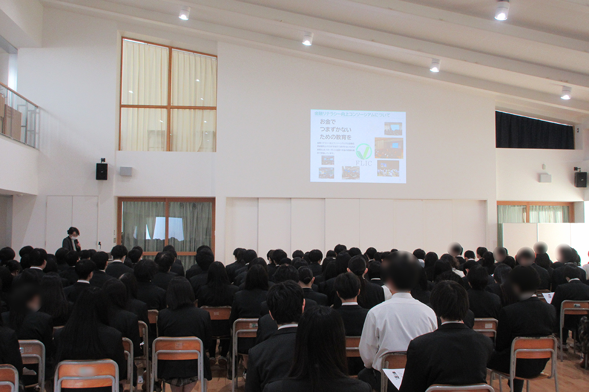 人生の三大資金である「住宅資金」「教育資金」「老後資金」について、どの程度の費用がかかるのかをクイズを交えながら学び、夢や目標を実現するためにはお金が必要であることを理解した。就職や結婚、子どもの教育・養育、定年退職後などのライフイベントと収支曲線を見比べながら、収支ギャップ(予定外の収入減少や支出増加)が生じた場合には、資産の取崩しや消費の制御、借入などの対応が必要となることを学んだ。そのため、必要な資金を確保するための貯蓄のポイントとして、先取り貯蓄などの家計管理の方法について学習した。また、18歳から一人で有効な契約をすることができるようになるため、ヤミ金融や高収入アルバイトなど、さまざまな金融トラブルの事例を通して、だまされないためのポイントについて学習した。今後利用していくローンやクレジットの仕組みや利用方法、信用情報についても学び、金融トラブルに巻き込まれないためには、金融リテラシーを身に付けることが重要であると理解した。